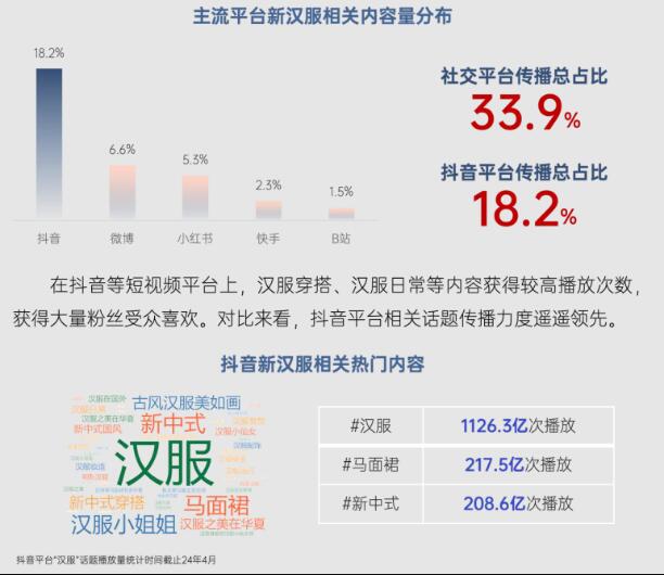 6月25日,在中國服裝協(xié)會支持下,北京大學(xué)匯豐商學(xué)院創(chuàng)新創(chuàng)業(yè)中心和知微研究院聯(lián)合發(fā)布《新漢服產(chǎn)業(yè)網(wǎng)絡(luò)平臺發(fā)展研究(2024)》報(bào)告。報(bào)告重點(diǎn)闡述了抖音等網(wǎng)絡(luò)平臺對新漢服產(chǎn)業(yè)興起、轉(zhuǎn)型和發(fā)展的賦能作用,指出短視頻平臺不僅推動了漢服文化的復(fù)興浪潮,還通過直播電商推動新漢服從小眾市場向產(chǎn)業(yè)帶轉(zhuǎn)化,形成產(chǎn)業(yè)集聚效應(yīng),帶動區(qū)域經(jīng)濟(jì)蓬勃發(fā)展。